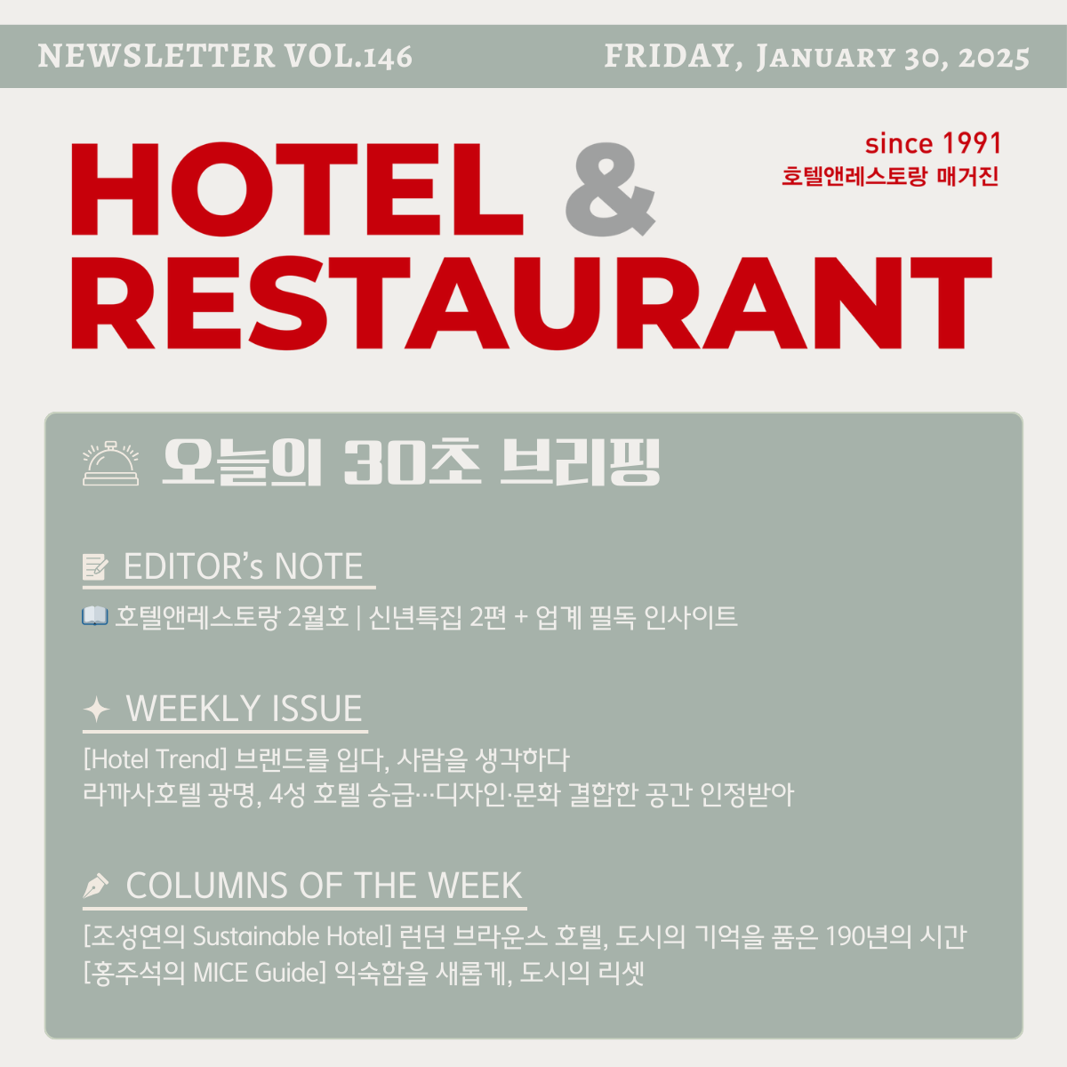 양적 성장을 넘어 질적 완성도를 높이는 2026년, <호텔앤레스토랑> 2월호와 함께 호스피탈리티 업계의 새로운 도약을 준비하세요! ✨